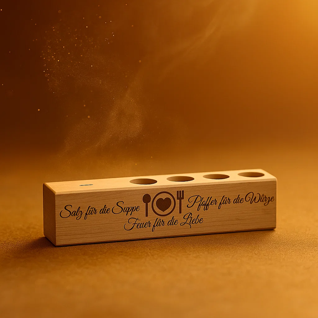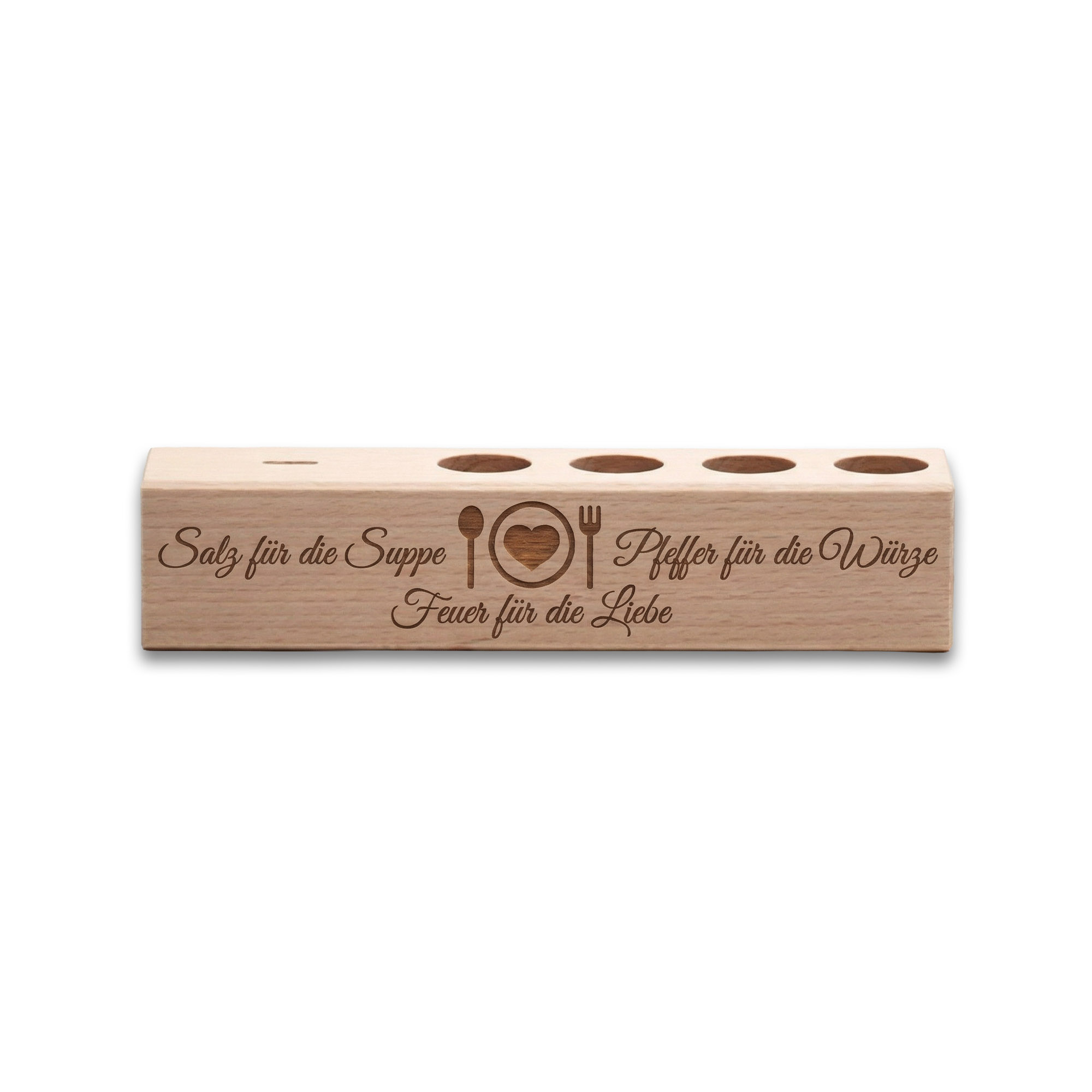 4er Gewürzständer Salz für die Suppe Pfeffer für die Würze Feuer für die Liebe